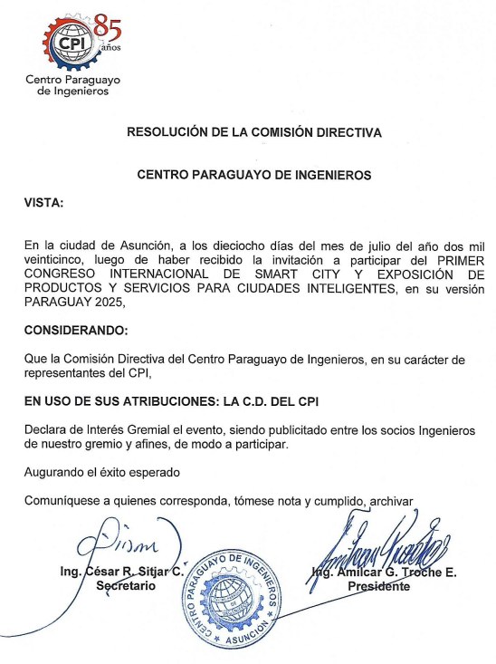 También es factible el pago vía transferencia o depósito bancario, directamente en la cuenta del Centro Paraguayo de Ingenieros (cuenta corriente Nº 70271847/6, Banco Itaú). En este caso, solicitamos enviar copia de la transferencia al correo cpi@cpi.org.py, para coordinar lo concerniente a la emisión y entrega de la factura respectiva.